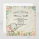 Um adorável convite para chás de fraldas de vintage com um elefante e flores cor-de-rosa.