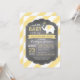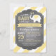 Fundo impressão de de faixa diagonal amarela e branca com cartaz de convite para chás de fraldas de elefantes brancos.