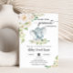 Convites Chá de fraldas de Elefante Branco Verde Floral