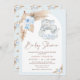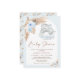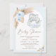 Blue Boho Arch Sleeping Elephant Chá de fraldas Convite para o elefante do menino O convite para o chá de fraldas de um garoto bonito apresenta um arco branco, fundo azul-bebê e arranjos florais azul-boho com grama-pampas.