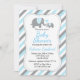 Convites Chá de fraldas de Elefante com Stripe de Cinza azu