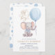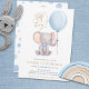 Convites Chá de fraldas de Elefante Cute de Balão Azul Meni