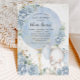 Personalize este cartão de convite de chá de fraldas de garoto branco de forma fácil e rápida, simplesmente clique no botão personalizá-lo para editar os textos, alterar as fontes e as cores das fontes. Projetado para captar a essência da alegria e da antecipação, esse convite encantador apresenta um adorável elefante para bebês, acompanhado pela elegância suave dos rosas azuis para bebês e delicados arranjos florais. Um toque lúdico é adicionado com um balão de aquarela, onde você pode colocar seus detalhes de personalização. Itens correspondentes disponíveis no repositório. c) Paperie fina somerset