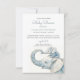 Um simples convite para chás de fraldas de aquarela branca, com uma mãe e um elefante bebê. Tipo de script e serif.