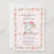 Adorável design chá de de menina com a menina mais doce elefante enquadrado com a terra cor-de-água rosa, adornada com um confete dourado. Sacudir o nosso convite para ver um floral cor-de-rosa.