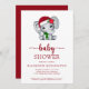 Convite para Chá de fraldas de Elefante de Natal bonito com um adorável elefante bebê em um bonitinho chapéu de Papai Noel vermelho e verde. Perfeito para o seu inverno ou Chás de fraldas de férias! Entre em contato conosco em cedarandstring@gmail.com se precisar de assistência com o design ou produtos correspondentes.