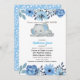 Convites Chá de fraldas de Elefante Floral Azul-Cinto