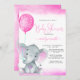 Convites chá de fraldas de elefante fofo de balão rosa