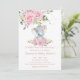 Convites Chá de fraldas de Elefante Fofo Rosa Bebê
