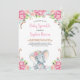 Convites Chá de fraldas de Elefante Fofo Rosa Bebê