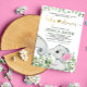 Convites Chá de fraldas de Elefante Neutro por Aquarela de