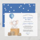 Um chá de fraldas por correio é perfeito para aqueles que vivem uma longa distância dos entes queridos, mas ainda querem chá para que os pais estejam com amor e presentes para se prepararem para a chegada do seu bebê. Este longo Chá de fraldas à distância por convite por correio apresenta um elefante a aquarela com um balão azul sentado numa pilha de caixas de envio. Personalize com suas informações ou clique em "Clique para personalizar mais" para editar estilos de fonte, tamanho e cores.