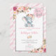 Convites Chá de fraldas de elefante, rosa e prata