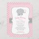 Convites Chá de fraldas de Elefante Rosa Moderno e Cinza