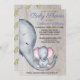 Convide amigos e família para comemorar a chegada do seu doce novo bebê com este belo convite de chá de fraldas de elefante rústico. Este chá bonito, convidado para um menino, apresenta um gentil elefante mama com seu bebê elefante. O bebê elefante está sentado no porta-malas da mãe elefante. Tão fofo e tenda para um chá de fraldas de menino.