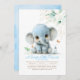 Dê uma olhada no mais adorável convite para o chá de fraldas, perfeito para celebrar um menino! Este convite mostra um bebê elefante giro sentado alegremente perto da garrafa de leite de um bebê. O pequeno elefante azul é rodeado por verde macio em tons de verde e ouro, com borboletas beige e marrons fluindo. O título delicioso, "Um Doce Pequeno Amendoim está a Caminho!" é destinado a trazer um sorriso ao rosto de todos e aquecer seus corações. Além disso, todos os campos de texto são editáveis, permitindo que você personalize o título para "Um menino doce está a caminho" ou "É um menino!"