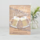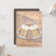 Um Bebê é um Chá de panela Russo com canecas de cerveja. Um fundo de madeira faz o convite perfeito para o casal que quer impressionar o convidado.