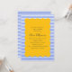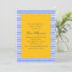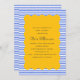 Este brilhante e alegre design de chá de fraldas apresenta um centro escalpado amarelo de ouro enquadrado por riscas azuis e brancas em negrito. Texto limpo e script manuscrito criam um contraste divertido que parece moderno mas clássico. Perfeito para celebrações náuticas, de pré-disquetes ou de verão com uma paleta de cores ousadas.