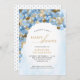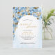 Este convite para chás de fraldas apresenta um gráfico de um arco de balão azul e dourado. Esta design é perfeita para um chá celebrando um menino.