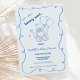 Um rabisco da moda desenhado à mão desenhou um convite de chá de fraldas azul empoeirado seguindo a última tendência no papel de carta chá de fraldas. Este convite de estilo caprichoso e peculiar apresenta o tema do chá de fraldas "podemos esperar muito" numa perspectiva de tendência. Convidado perfeito para chás de fraldas modernos modernos modernos modernos para bebês.