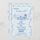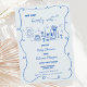 Um rabisco da moda desenhado à mão desenhou um convite de chá de fraldas azul empoeirado seguindo a última tendência no papel de carta chá de fraldas. Este convite de estilo caprichoso e peculiar apresenta o tema do chá de fraldas "podemos esperar muito" numa perspectiva de tendência. Convidado perfeito para chás de fraldas modernos modernos modernos modernos para celebrações neutras em relação ao gênero.