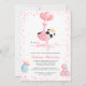 Este adorável convite para chás de fraldas mostra um urso panda menina sendo voado por balões com roteiro elegante e texto moderno para seus detalhes. A parte traseira apresenta um urso panda segurando um balão. Fácil de personalizar clicando em "Personalizar".