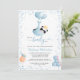 Este adorável convite para chás de fraldas mostra um urso-panda rapaz sendo voado por balões com uma escrita elegante e texto moderno para seus detalhes. A parte traseira apresenta um urso panda segurando um balão. Fácil de personalizar clicando em "Personalizar".