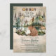 Os animais juntaram-se nesta floresta rústica de cor-d'água para a celebração do chá de fraldas do menino "Oh Boy" "We Can Barly Wait". Um urso pardo sentado na base da floresta perto do lago e manter sua companhia é um guaxinim giro e no fundo sob uma árvore está um veado descendente. Tudo o que é necessário são os detalhes do seu chá para completar o design. Design composto por Designs Holiday Hearts.
