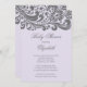 Comece seu chá de fraldas de bebê com nosso convite de Chá de fraldas de espiral de cinza floral de moda e elegante, definido em um fundo púrpura de lilac. Personalize nosso convite elegante com suas informações de chá de fraldas e você está pronto para ir. Disponível em outras combinações de cor de bebê na moda no nosso compro em www.celebrateitinvites.com. Veja nossas notas de agradecimento, adesivos e botões de bebê em nosso compro