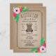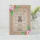 Um convite para o chá de fraldas com a ilustração de um urso bebê vestindo uma coroa de flores rosa. Personalize o texto. O plano de fundo é o estoque de cartão marrom inspirado.