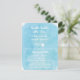 Um pensamento minimalista e elegante sobre o tema do chá de fraldas estrelado brilhando. O convite foca a tipografia em branco sobre fundo azul de textura aquosa. Uma estrela cadente e várias pequenas estrelas decoram a design. Na parte de trás está um padrão de padrão zigzag crônica. Personalize com os detalhes do seu chá de fraldas em texto branco.