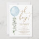Convites Chá de fraldas de Eucalyptus, um balão azul minima