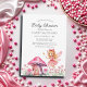 Convites Chá de fraldas de fadas e cogumelos cor-de-rosa