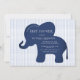 Silhueta de elefante bebê azul marinho com detalhes de evento dentro forma. O passado da risca azul pastel aumenta a doçura desse convite. Tão doce quanto pode ser. Um convite perfeito para um evento perfeito. Estilo neutro em termos de gênero. 100% de satisfação do cliente na Zazzle todos os dias.