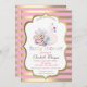 Bebê giro com flor em fundo listrado de ouro. Esses convites para chuveiros de bebês são facilmente personalizados para seu evento simplesmente adicionando seus detalhes.