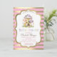 Cogumelos de aquarela com flores em fundo listrado de ouro. Esses convites para chuveiros de bebês são facilmente personalizados para seu evento simplesmente adicionando seus detalhes.