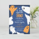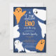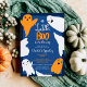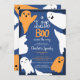 Adorável e fofo! Festa de chá de fraldas das ilustrações de Halloween, chá de fraldas perfeito de Halloween, com ilustrações bonitinhas com fantasmas e boo em laranja e azul escuro. Você pode alterar todas as cores da ilustração e do texto.