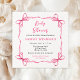Este convite de chá de fraldas giro e caprichoso apresenta um bonito quadro de fita cor-de-rosa. O texto combina o script manuscrito e as fontes sans serif para uma aparência na moda e moderna.