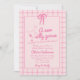 Se você está procurando por um elegante convite de chá de fraldas de menina, único e fácil personalizável, isso é perfeito para você. Como podem ver, ele apresenta um script manuscrito retrô de um ganso de bobo está prestes a ficar solto em rosa vívido. E ganso desenhado à mão e uma fita. E o guarda-lamas rosa e quadrados cor-de-rosa, gingham. Todos claros, cor-de-rosa e sobre fundo cor-de-rosa claro. Muito fácil de personalizar e usar. Então pegue e masculine seus convites muito comprometidos.