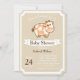 design com um convite gráfico de chá de fraldas branco de fita. Excelente para um animal fazenda ou chá temático geral para uma menina!