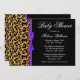 Convites Chá de fraldas de fita roxa com padrão-leopardo