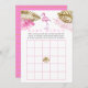 Cartões de bingo chá de fraldas de folhagem tropical com aquarelas, com um flamingo cor-de-rosa e folhas de folha cor-de-rosa e douradas, concebidos para serem rápida e facilmente adaptados às suas especificidades de evento.