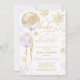 Convites Chá de fraldas de flocos de neve Dourada e roxa de