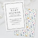 Convite Colorido para Chás de fraldas de flor selvagem elegante botânico de aquarelas. Celebre a mãe a estar com uma design vibrante que lindamente combina elegância clássica com um toque moderno. A frente mostra um texto preto refinado, enquadrado por uma fronteira limpa de linha dupla, criando um eterno mas contemporâneo. A tipografia apresenta uma mistura de caligrafia manuscrita e uma fonte serif clássica, acrescentando um toque de sofisticação. O dorso é enfeitado com um padrão delicado e colorido de flor silvestre em tons pastéis de rosa, roxo, azul, verde e amarelo — evocando a beleza e frescura do primavera e verão. Este design animado, porém suave, traz um encanto botânico alegre aos seus convites para o chá de bebê. Perfeito para festas de jardim, reuniões quentes ao ar livre ou comemorações de primavera e verão, este convite oferece uma estética lúdica, mas refinada. Totalmente personalizável, você pode ajustar as cores, as fontes e o layout para corresponder ao estilo e ao tema exclusivos. Disponível como convite impresso ou arquivo digital baixável, este design dá o tom para uma celebração inesquecível honrando a mãe de estar com beleza vibrante e um toque minimalista.