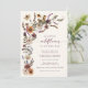 O Convite ao Chá de fraldas de Bóho de Flor Selvagem é um testemunho de elegância e charme. Apresenta flores silvestres de cor aquosa, pintadas à mão, em tons de burgundy, ouro, creme e roxo, complementadas por verde-luxuoso. Ideal para qualquer estação, essas flores silvestres estão lindamente organizadas em um buquê lateral, oferecendo uma estética moderna e fresca. Com o texto burgundy sobre um fundo creme e um padrão de flor silvestre caprichosa no verso, este convite combina versatilidade e sofisticação, fazer-o uma escolha perfeita para a sua celebração.