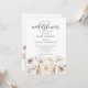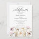 Nossa flor selvagem está pronta para florescer! Os elegantes botânicos de cor d'água da rusticidade terrestre fazem um convite de chá de fraldas com um tipo clássico de serifa e um tipo elegante de caligrafia de escrita. Florais em tons de rosa com uma delicada dispersão de ouro. Perfeito para primavera, verão ou chás de fraldas de outono.