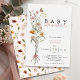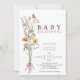 Convite para Chá de fraldas de Garota Rosa Floral de Flor Selvagem