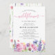 Um convite elegante para chás de fraldas de flor silvestre, que inclui uma variedade de flores de cor aquática e verde. Perfeito para primavera/chá de fraldas de verão.