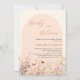 Um bebê elegante no convite de Chá de fraldas Bloom. Um fundo creme, cor bege e um arco colorido de pêssego. Decorado com flores silvestres de cor d'água em bege, rosa.