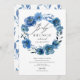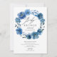 Bonito convite para brunch de chá de fraldas com uma bela aquarela, indigo marinho azul, coroa floral, com uma folha coordenadora para um toque especial extra.
